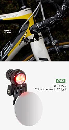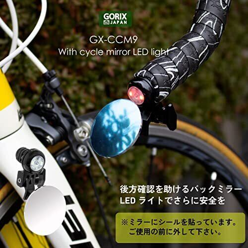 GORIX(ゴリックス) サイクルミラー LEDライト付き バーエンド 自転車ミラー ロードバイク 軽量 バックミラー (GX-CCM9) 可動式調整可能 アルミ セーフティー ミラー 取付簡単 補助ミラー