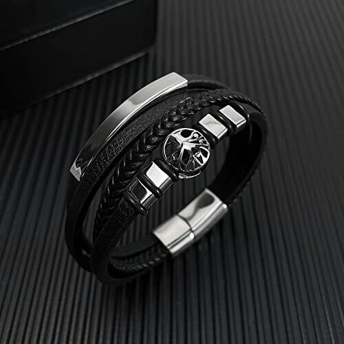 【優れた3連ブレスレット】おしゃれで着用しやすい生命樹デザイン、派手過ぎず、地味過ぎない、ちょうど良い存在感が魅力のレザーブレスレットです。普段使いでもフォーマルでも大活躍する、人気の幅広レディースバングルです。 【Rockyu ブレスレット】メンズブラックブレスレット 生命の樹ブレスレット レザー 4連【カラー 】: ブラック【重量 】: 25g 【寸法 】:チェーン長さ:210mm 幅:11mm 【使用場面】 ちょっとしたプレゼントにも最適です。結婚式、二次会、謝恩会、式典、お呼ばれ、パーティー。新年、クリスマス、誕生日、記念日、特別日、恋人、家族、友達に大切な方へのお贈り物にオススメです。