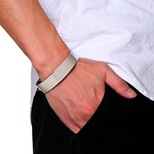 [Rockyu] ブランド メンズ バングル ステンレス 太め シルバー フリー形 調節可能 ブレスレット 幅広 フリーサイズ アレルギー対応 ヨーロッパ スタイル 誕生日 結婚式 人気プレゼント