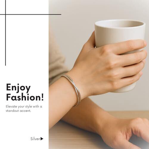 【クロスデザイン】シンプルなクロスデザインが特徴のバングル。ワンポイントで大人な雰囲気を格上げ。曲線が生む“抜け”が重ね付けでも重たさを感じさせず、オンオフ問わず映えるバングルです。 【華奢見せ効果】程よくボリューミーなのに横幅は控えめ。手首をほっそり映す視覚トリックで、シンプルなトップスも即フェミニンモードへ引き上げます。 【肌想い設計】服を傷めにくい滑らかなフォルムと、低刺激ステンレス素材を採用。サビに強く敏感肌でも快適に使え、ギフトにも選びやすい一品です。