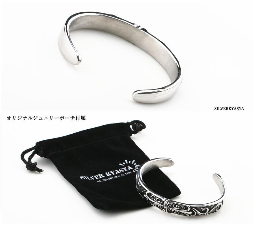 「silverKYASYA」ステンレス素材 メンズ バングル クロスバングル ブレスレット フローラル バングル