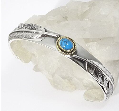 素材:シルバー925 (約)幅:1cm / 厚み:1~3mm フリーサイズ(内周:約14cm) 石部分:天然石ターコイズ(トルコ石) ターコイズを埋め込んだフェザーモチーフのエスニックなバングルです。