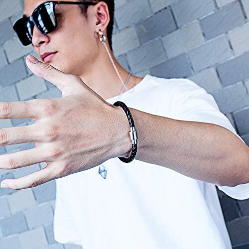 【優れた編み込みデザイン】 シンプルで着用しやすいデザイン、派手過ぎず、地味過ぎない、ちょうど良い存在感が魅力の編み込みブレスレットです。普段使いでもフォーマルでも大活躍する、人気のブラックブレザーレスレットです。マグネット内蔵なので、着脱も簡単です。 男女問わず着けやすく、様々なコーデに合わせられるシンプルさが魅力です。 【Rockyu ブレスレット】 メンズブレスレット レザー 編み込み マグネット内蔵 寸法:チェーン長:210mm 重量:9g