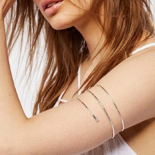 【二の腕を華やかに彩る3点セット】シンプルながら存在感のあるスパイラルデザインのアームレットです。ゴールド、シルバー、ローズゴールドの3色がセットになっており、その日の気分やファッションに合わせて、単体使いや重ね付けを楽しめます。夏のノースリーブコーデや水着スタイルのアクセントに最適です。 【サイズ調節可能&快適なフィット感】柔らかい合金素材を使用しており、自分の腕の太さに合わせて優しく広げたり締めたりしてサイズ調整が可能です。二の腕にしっかりフィットし、ずり落ちにくく、長時間の着用でも痛くなりにくい設計です。アームカフとしてだけでなく、手首のバングルとしても2WAYで使用できます。