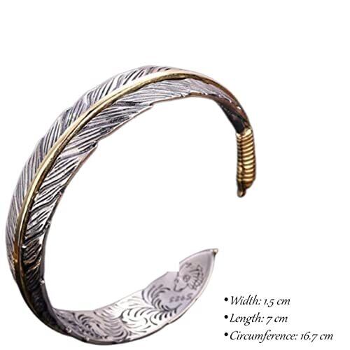[ISEFUJI] バングル ブレスレット メンズ シルバーカラー アクセサリー 羽根 フェザー 人気 幅1.5㎝ 長径7㎝ 周径16.7㎝