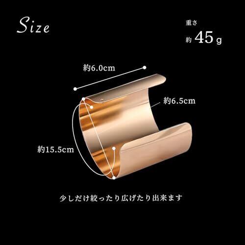 手首に付けるだけで、手元を一気に華やかに、上品にしてくれゴールドのバングルです。 ゴールドのバングルは留め具のないC型デザインのバングルだから簡単装着、脱着もラクラク!両端を軽く絞ったり広げたりすることで、手首のサイズに合わせて微調整が可能です。 ゴールドのバングルは存在感のあるワイド幅が特徴で、手首をすっきりと見せながら上品な印象を演出。ドレススタイルからカジュアルなデニムコーデまで、幅広いスタイルにマッチします。