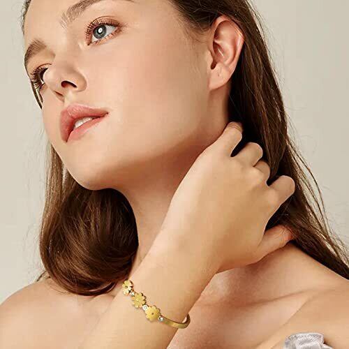 バングル レディース ゴールド 金 3 本菊の花ブレスレット ステンレス鋼 金属アレルギー対応 花 フラワー 菊の花 czダイヤ ゴールド ジルコニアブレスレット 記念日 プレゼント