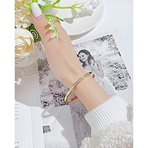 【ラインストーンバングル】シンプルで着用しやすいデザイン、派手過ぎず、地味過ぎない、ちょうど良い存在感が魅力のジルコニアバングル,普段使いでもフォーマルでも大活躍する、人気のレディースバングルです. 【Rockyu バングル】ラインストーンバングル レディース ダイヤバングル 光面ブレスレット 材料:ゴールド チタン ジルコニア 寸法: 長さ170mm 幅4mm 重量(g): 14.5 「使用場面」ちょっとしたプレゼントにも最適です。ご利用用途:結婚式、二次会、謝恩会、式典、お呼ばれ、パーティー。新年、クリスマス、誕生日、記念日、特別日、恋人、家族、友達に大切な方へのお贈り物にオススメです。