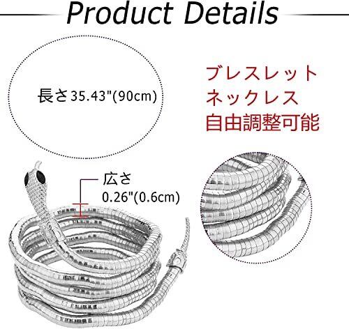 【ヘビ 蛇 ブレスレット ネックレス】ヒップホップ ロックパンク アクセサリー、存在感もあり、男性、女性ともにご着用可能です。 【自由調節可能】 柔らかい材質なので、多重巻き、形、スタイル自由に調節でき、ブレスレットやネックレスなども使えます。 【適用場合】 普段使い、通勤、通学、デード 、パーティー、 イベントなど活躍のシーンは様々です。 【特別なプレゼント】ご自用及び、誕生日、記念日、バレンタインデー、クリスマスなど友達、彼氏彼女のプレゼント・ギフトお勧めです