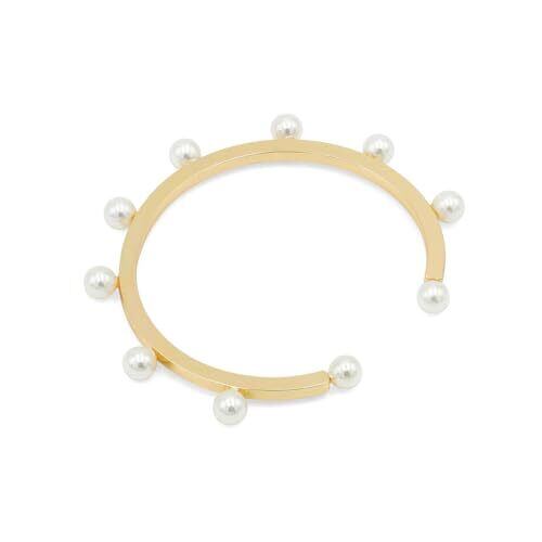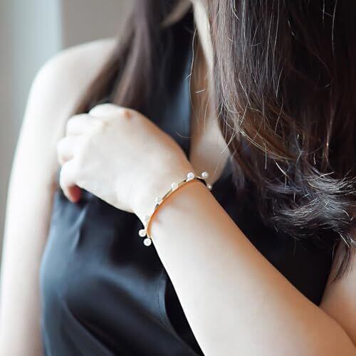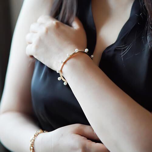デザイン性: 洗練されたゴールドカラーに、上品な真珠調パールを均等に配置したエレガントなデザイン パール特徴: バングル全周に10粒の真珠調パールを配置、クラシカルな雰囲気を演出 着用スタイル: 単体でも重ね付けでも映える、スタイリッシュな細身フォルム 素材感: 艶やかなゴールドカラーメタルと、上品な光沢の真珠調パールの組み合わせ シーン活用: 結婚式やパーティーから、デイリーコーディネートまで幅広く対応