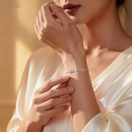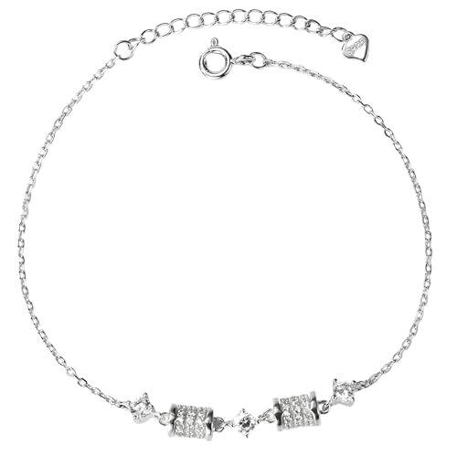 [Mitsurotei] ラッキービーズ ブレスレット レディース S925スターリングシルバー ブレスレット シルバー 調節可能な繊细なチェーン ジルコニア レディースアクセサリー 誕生日 に最適
