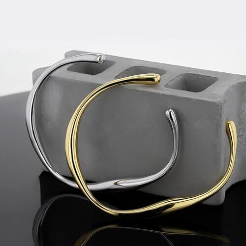 [#925sss] 公式 サージカルステンレス 18K [金属アレルギー対応] 本物 高級 ツイスト オーガニック リキッドメタル バングル ブレスレットフリーサイズ [安心の30日返品品質保障]