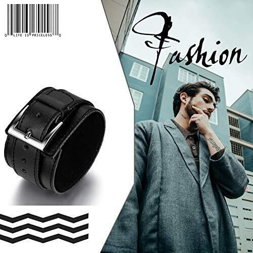 JewelryWe メンズ ブレスレット, ワイド 幅広 ゴシック パンク系 ロック バングル, レザー 本革, 合金, カラー:ブラック;[ギフトバッグを提供] ジュエリー ファッション アクセサリー