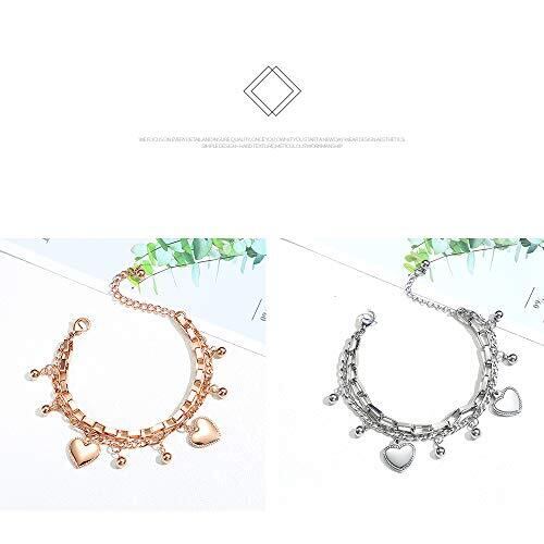 レディース ブレスレット ステンレス シルバー ハート バングル 多重チェーン16.5+5.5cm 可愛い バレンタインデー 人気 ギフト