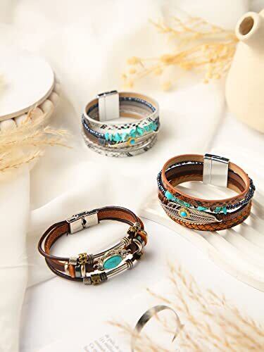 お届けするアイテム:パッケージには女性用ウエスタンブレスレットが3個含まれています。クラシックで、着用をサポートし、交換し、ニーズを共有するのに十分な3つのスタイルがあります。 信頼性が高く長持ち:高品質の合金、クリスタル、人工皮革を採用した当社の女性用ウエスタンブレスレットは、肌に優しく、優しくても頑丈で、色あせ、変形、破損しにくいです。 繊細な外観:ヴィンテージカラーが特徴のこのウエスタンレザーブレスレットは、毎日の着用にエレガントなタッチを加え、魅力を高めます。