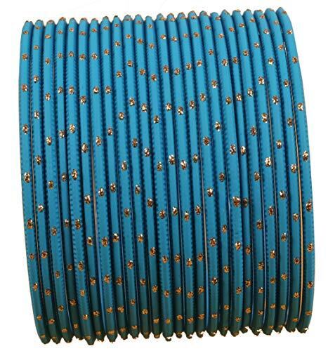 Touchstone 「カラフル バングル コレクション」 インディアン ボリウッド エクスクルーシブ ゴールデン グレーズ ティファニー ブルー カラー デザイナー ジュエリー スペシャル サイズ バングル ブレスレット。女性用24枚セット。サイズ:中~大。インディアン 2-8.内径2.5インチまたは6.35cm。失望を避けるために、注文する前に古いバングルと照合してください。