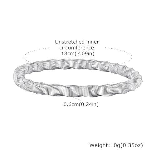 [Rockyu] ブレスレット メンズ ステンレス モビウスバングル シルバー スプリング構造 幅広0.6cm 金属アレルギー対応 ツイスト風デザイン おしゃれ 春夏秋に映えるアクセサリー