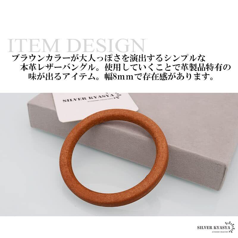 [silver KYASYA]縫い目なし 本革 バングル レザーブレスレット 牛革 シンプル ブラウン プレーンバングル 2サイズ 太め 8mm