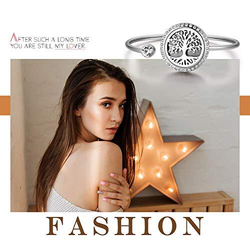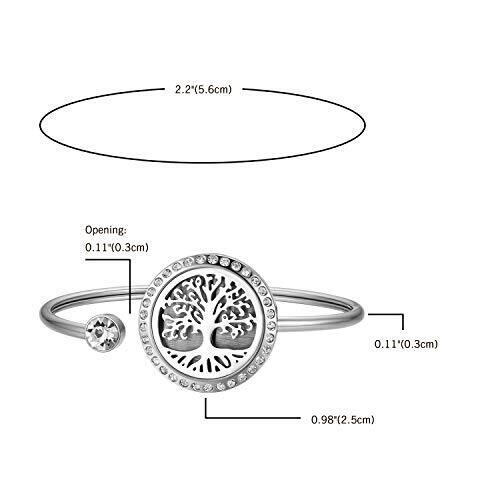 レディース アロマ ブレスレット ロケット バングル: 香水アクセサリー 生命樹 花 円形 フォトフレーム 開く可能 透かし彫り おしゃれ ステンレス製 腕輪-彼女 友達 母へ プレゼント 記念日 誕生日 バレンタインデー(シルバー ゴールド)