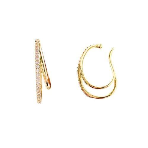 耳に引っ掛けるだけの簡単でストレスフリーなイヤーカフ 美しいダブルラインに、CZダイヤモンドの輝きそしてメタルリングを絶妙なバランスで合わせたデザイン カジュアルにもパーティー等のシーンでも活躍。 ノンホールの方でもお気軽にオシャレが楽しめます。 素材 :真鍮 、キュービックジルコニア、 18Kゴールドコーティング;サイズ:2.8cm*2.0cm プレゼントとしても人気アイテム: 大切な方への誕生日などの贈り物に、ジュエリーをプレゼント