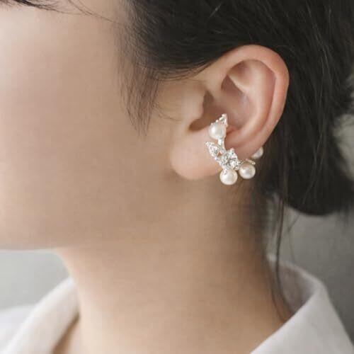 丸みを帯びたパールと輝くジルコニアを使用した洗練されたデザイン。シンプルでありながら存在感があります。 一方はパールとダイヤ型のジルコニアを組み合わせ、もう一方は大きなダイヤ型のジルコニアとパールでアクセントを加えたデザインです。 着脱や調整がしやすいアイテム。 接地面が広く圧迫感が軽減されるため、長時間着けていても痛くなりにくい形状です。 ピアスホールがなくても簡単に着けられる耳骨クリップ。耳に優しく、フィット感も抜群です。