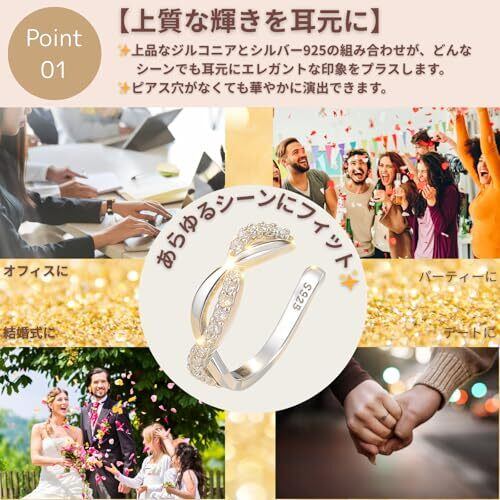 【上質な輝きを耳元に】 上品なジルコニアとシルバー925の組み合わせが、どんなシーンでも耳元にエレガントな印象をプラスします。ピアス穴がなくても華やかに演出できます。 【金属アレルギーにも配慮】 S925素材を使用し、敏感な肌の方にも安心してお使いいただける低刺激設計。長時間の着用でも快適に過ごせます。 【ギフトにも最適】 女性らしさを引き立てる上品なデザインは、自分へのご褒美だけでなく、大切な人への贈り物にもぴったり。誕生日、記念日、母の日にも◎