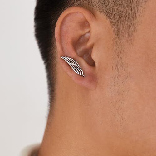 【翼デザインのイヤーカフ】 翼をモチーフにしたデザインが特徴的で、スタイリッシュな印象を与えます。耳元を華やかに飾り、個性的なアクセントとして活躍します。 【Rockyu イヤーカフ】メンズ レディース シルバー ステンレス 素材: ステンレス、サイズ: 高さ25mm、幅7.5mm、重量: 2g、金属アレルギー対応。長時間の使用でも快適に着けられます。 【ノンホール設計】 ピアス穴がなくても簡単に装着できるノンホールタイプです。耳を傷つける心配がなく、男女問わず着用可能で便利です。