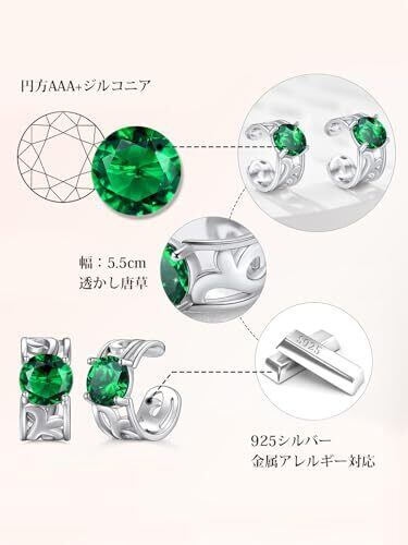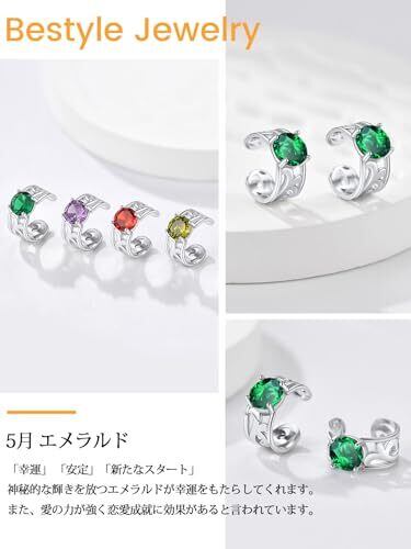 Bestyle イヤーカフ レディース シルバー925 ペア 2個セット イヤリング メンズ 金属アレルギー対応 両耳 ジルコニア ノンホールピアス 男女兼用 透かし唐草 イヤーカフ 誕生石 シンプル