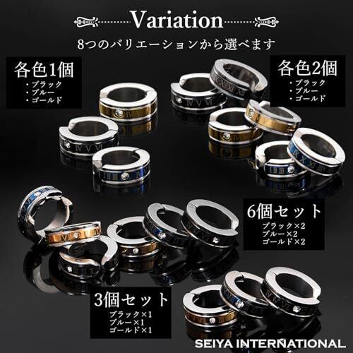 [SEIYA INTERNATIONAL] フェイクピアス メンズ イヤリング イヤーカフ イヤカフ ピアス風 アクセサリー ノンホールピアス レディース ローマ数字 ステンレス シンプル フープ 3色セット