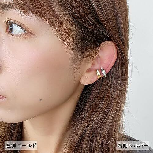 [Adelina Style] フェイクピアス ノンホールピアス イヤリング イヤーカフ イヤークリップ 人気 幅4mm ラインストーン キュービックジルコニア 表面加工 メンズ レディース 挟むだけ 簡単 ピアス 金属アレルギー対応