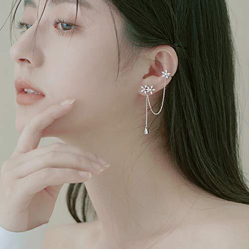 Candy girls ピアス レーディス 花 可愛い 揺れる 左右非対称 イヤーカフ おしゃれ チェーンピアス シルバー925 金属アレルギー対応 プレゼント 彼女 アクセサリー