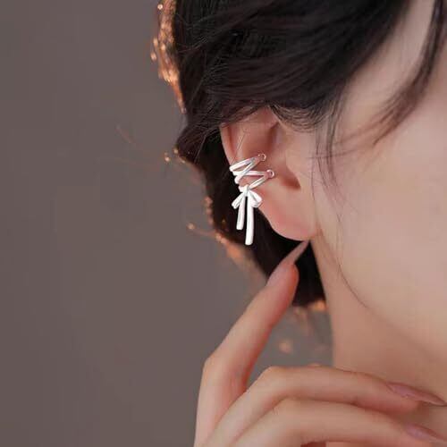 Chynianイヤーカフリボン金属アレルギー対応 レディース人気 揺れる蝶結び可愛い イヤリング揺れるノンホールピアス大ぶり 耳アクセサリー おしゃれ