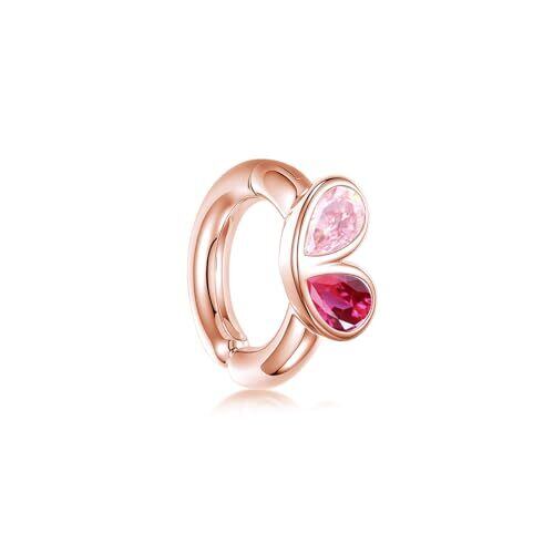 愛のコントラスト:情熱のルビーとピンクトルマリンのハートイヤーカフ。深紅と優しいピンクのコントラストが、愛の熱さと優しさを表現したロマンティックなデザイン。右耳に付けると正面向きのハート、左耳に付けると遊び心のある逆さハートになり、さりげない可愛さがポイント 新な設計:このハート型イヤーカフはある新構造を採用しているので、こちらのフェイクピアスは耳の厚さに合わせて挟む強さを自分自身で調節ができるタイプなので好みの強さで調節ができ。柔らかく痛くなく、しっかり固定されるのに長時間付けていても負担ゼロ!