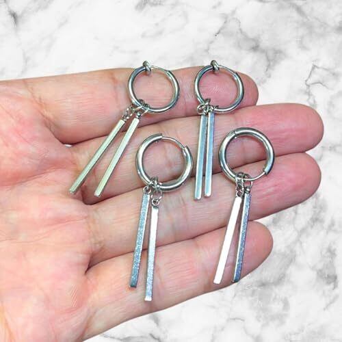 ✅ タイプが選べる:ピアス/クリップ(ノンホール) ✅ 錆びにくいステンレス:水・汗に強く色が落ちにくい。水洗いOKで衛生的 ✅ 二本バーの立体感:動くたびに上品にきらめき、小顔見えを演出 ✅ ユニセックス:メンズ・レディース兼用、韓国系・モード・カジュアルにもマッチ 本製品はステンレス素材を使用しており金属アレルギーに配慮しておりますが、体質によってはアレルギー反応が出る場合がございます。異常を感じた際は直ちに使用を中止し、専門医にご相談ください。