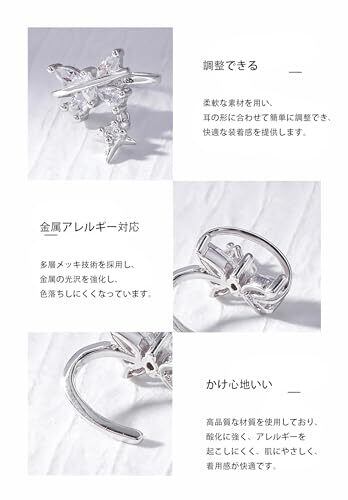 【可愛い蝶イヤーカフ】ゆらゆら揺れる蝶が女性らしさを演出! フォーマルからカジュアルまで、どんなスタイルにもマッチする優雅さとおしゃれ感をプラス。 【痛くないイヤーカフ】銅メッキシルバー仕様で肌に優しく、耳の厚さによって調節できます。着脱が便利で、長時間装着しても耳を傷っけることはありません。 【多様なシーンで活躍】 結婚式、卒業式、誕生日、クリスマス、ホワイトデーなど、特別な日の装いに。ギフトボックス付きでプレゼントに最適!