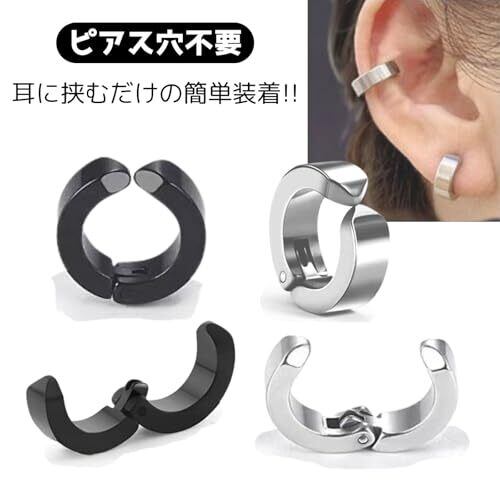 フェザー イヤリング フェイク ピアス フープ イヤーカフ 羽 チャーム ステンレス 錆びない 韓国 BTS デザイン ダンサー ラッパー ストリート メンズ レディース 両耳 4個セット