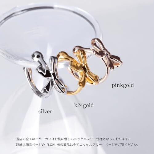 LOKUMI イヤーカフ 日本製 金属アレルギー対応 3カラー シルバー ゴールド ピンクゴールド レディース 金メッキ メンズ シンプル リボン メタル 人気 ギフト プレゼント lmec-15