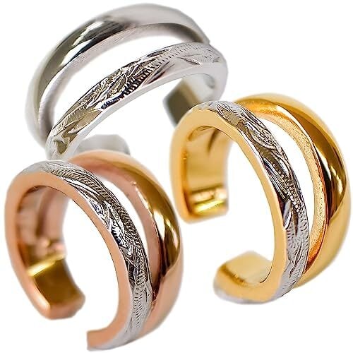 ハワイアンジュエリー イヤーカフ 金属アレルギー対応 メンズ レディース ステンレス シルバー ゴールド ピンクゴールド スクロール 波 ユニセックス 男女兼用 フープ サージカル イヤリング プレゼント 片耳用 穴のいらないピアス イヤカフ サージカルステンレス316L