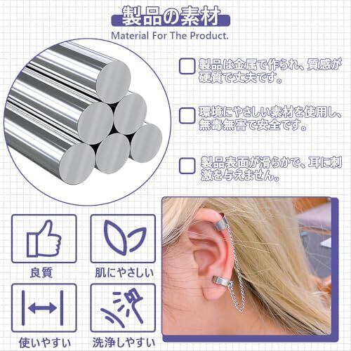 【商品紹介】 ピアス不要のイヤリングで、金属製(銀色)、1 個入り(重量 20g)。アジャスタブルフック仕様で耳に痛みを与えず、しっかり固定。ファッションでシンプルかつ上品なデザインで、ストリートダンス、パーティー、コスプレ、コンサートなどの場面で個性的なアクセントに。 【商品サイズ】 イヤリング直径:1.6cm 全長:9.5cm コンパクトでありながら、存在感のあるサイズで、耳元を華やかに演出します。 【適用範囲】 ストリートダンス、パーティー、コスプレ、コンサートなどのイベントや、日常のファッションアクセントとしても活躍。大人も子供も、ピアスが苦手な方にも最適です。