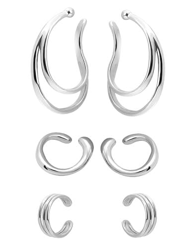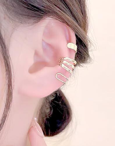 イヤーカフ 3ペアイヤーカフス イヤカフ イヤリング 大ぶり イヤーカフ レディース 金属アレルギー対応 ダブルライン 両耳セット Ear Cuff 軟骨 おしゃれ メンズ レディース アクセサリー シルバー/ゴールド