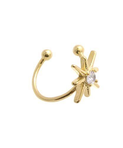 サイズ▼直径:約1cm、挟み幅:約0.5cm、モチーフ:約1cm×約1cm 素材▼キュービックジルコニア【ゴールド色】真鍮に金メッキ 小さなスター(星)モチーフが耳元でさりげなく輝く、かわいさと上品さを兼ね備えたイヤーカフ。シンプルなフォルムの中に遊び心があり、大人カジュアルなスタイルにも自然に馴染むデザインです。 耳に挟むだけで簡単に着けられる仕様で、軽量&フィット感も良好。単品使いはもちろん、他のイヤーカフやピアスとのレイヤードにも相性抜群で、デイリーからお出かけまで幅広く活躍します。