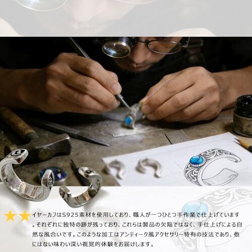 強烈な雰囲気:このメンズイヤーカフは唐草模様を採用して、ファッションの目玉の一つとなっており、美しい彫刻を楽しみながらクラシックな雰囲気を醸し出して、その雰囲気感に引き込まれます 1月の誕生石:ガーネットの石言葉は「情熱」「成功」。深みのある赤い輝きが、あなたにエネルギーを与え、困難を乗り越える力をもたらすとされています。身に着けることで、自信と前向きな気持ちを引き出してくれるガーネットイヤーカフです ヴィンテージ加工:このイヤーカフは、金属アレルギー対応の925シルバーに特殊な金属コーティングが施されており、安全性と耐久性を兼ね備えています。さらに、「ヴィンテージ加工」による独特の風合いが個性的な魅力を与え、カジュアルからフォーマルまで幅広く活躍する上品でスタイリッシュなアクセサリーです