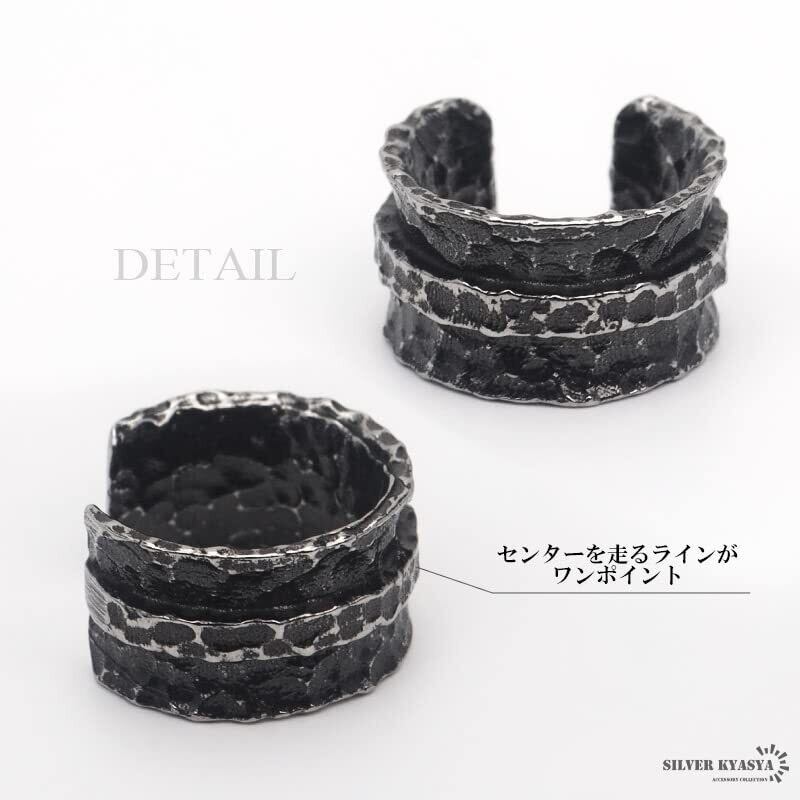 [silver KYASYA]ステンレス ブラック イヤーカフ メンズ 燻し風 槌目 アンティーク ヴィンテージ イヤカフ 金属アレルギー対応 片耳用1点
