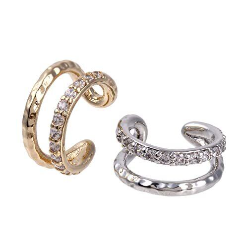 煌めくキュービックジルコニアとメタルリングを合わせた2連風デザイン。耳の上部と軟骨部分を挟むように引っ掛けるウェアリング(イヤーカフ)です。簡単に装着可能でピアスホールが無い方でも気軽にオシャレが楽しめます♪ ▽サイズ:全体:直径 約1.3cm / 幅:約0.6cm ▽素材:ニッケルフリー・真鍮製(18Kコーティング)・キュービックジルコニア ▽カラー:ゴールド / シルバー 【ギフトにも最適】彼女やお友達、ご家族など大切な方へのプレゼントに最適なアイテムです。記念日やお誕生日、ホワイトデー・クリスマス・母の日などイベントの景品にもおすすめです。