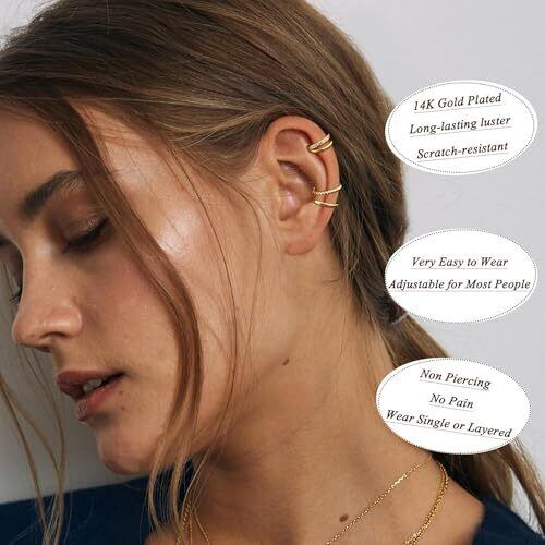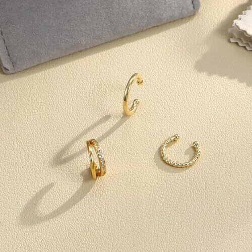 JeryWe 3点 イヤーカフ レディース シンプル ジルコニア 2連 かわいい おしゃれ ゴールド 組み合わせ 人気 フェイク ピアス 日常 ジュエリー
