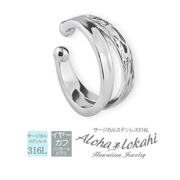 ハワイアンジュエリー イヤーカフ イヤカフ 大ぶり 2連 ステンレス シルバー フェイクピアス ノンホールピアス イヤークリップ ギフト プレゼント アクセサリー