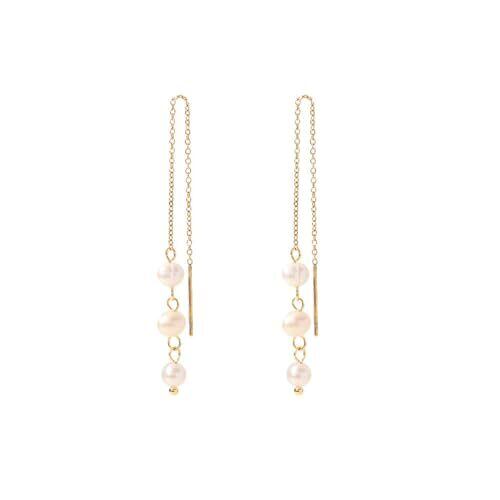ピアス チェーン パール レディース イヤリング ステンレス アクセサリー 可愛い おしゃれ お手頃 プレゼント, ゴールド