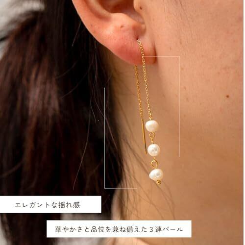 【さまざまなシーンにフィット】美しいパールが3つ連なり、シンプルながらも存在感のあるデザインが特徴です。カジュアルな日常使いから特別な日のアクセントまで幅広く活躍します。 【優雅に揺れる、三つの輝き】上品さとエレガンスを兼ね備えた特別なアイテムです。動くたびに耳元で揺れるパールが、魅力を引き立て、洗練された印象を与えます。 【サイズ】 ピアス全長:12.7cm 【プレゼントにも】 自分へのご褒美や、誕生日、クリスマス、ホワイトデー、記念日などに、恋人や友達への贈り物やプレゼントにおすすめです。