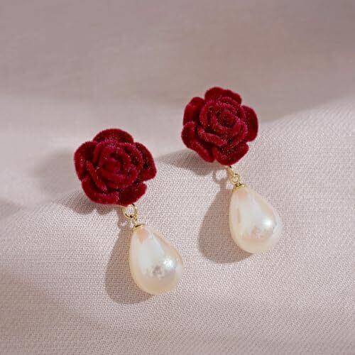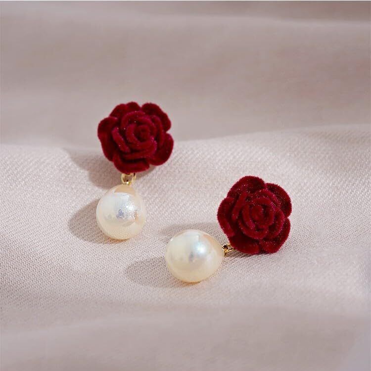 ✅【上品で華やかな薔薇デザイン】深みのある赤い薔薇モチーフが目を惹く、エレガントなイヤークリップです。女性らしい可憐さと大人の落ち着きを兼ね備えたデザインは、顔周りに華やかさを添えてくれます。普段使いはもちろん、結婚式やパーティーなどの特別なシーンにもぴったりの一品です。 ✅【パールの揺れ感が上品なアクセントに】しずく型のフェイクパールが優雅に揺れ、動きに合わせてさりげなく輝きをプラス。ゴールドの金具と相まって、落ち着いた高級感を演出します。甘くなりすぎず大人の女性にも似合うバランスで、幅広いコーデにマッチします。