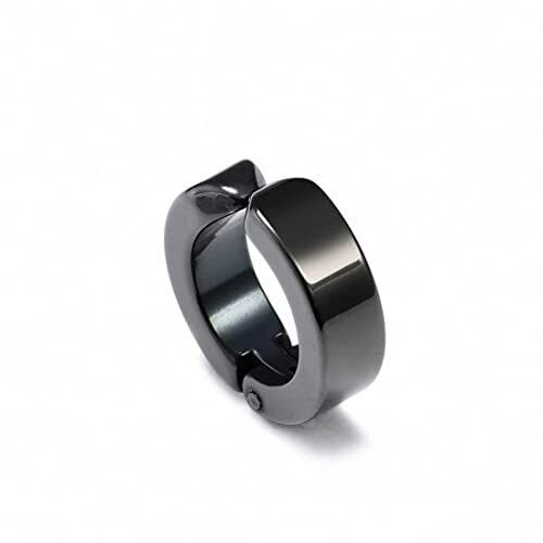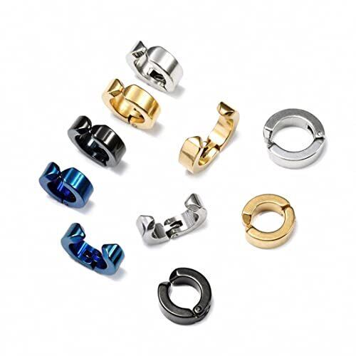 Rockyu フェイクピアス メンズ イヤーカフ イヤリング ノンホールピアス フープ 黒 金 青 ブラック リングピアス 中折 幅4mm 直径13mm アレルギー対応